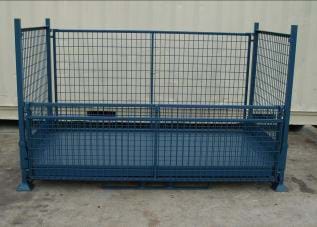 Large widebody stillage with a half drop down and fully removeable front gate with collapsible mesh sides featuring one end swing gate.