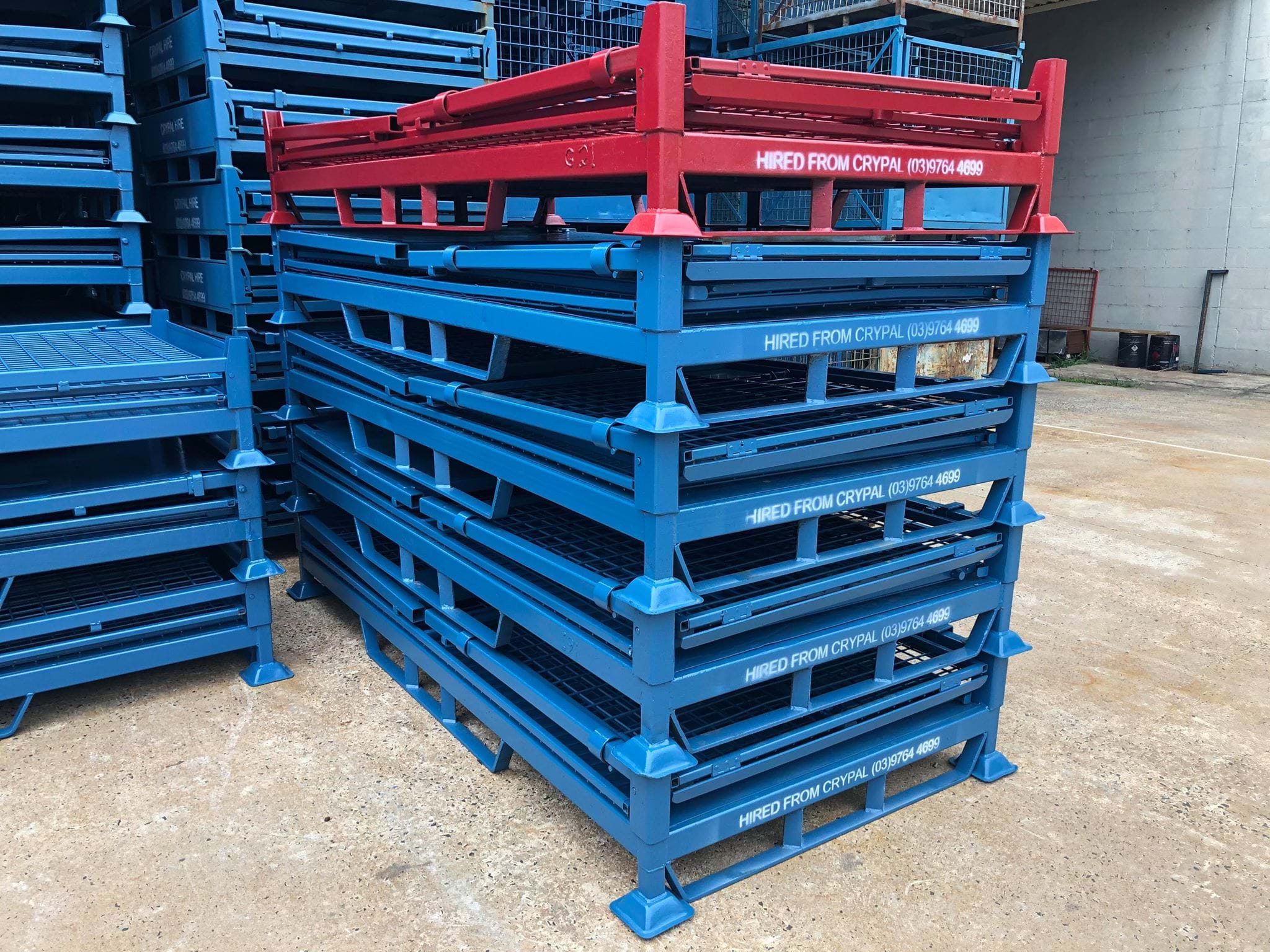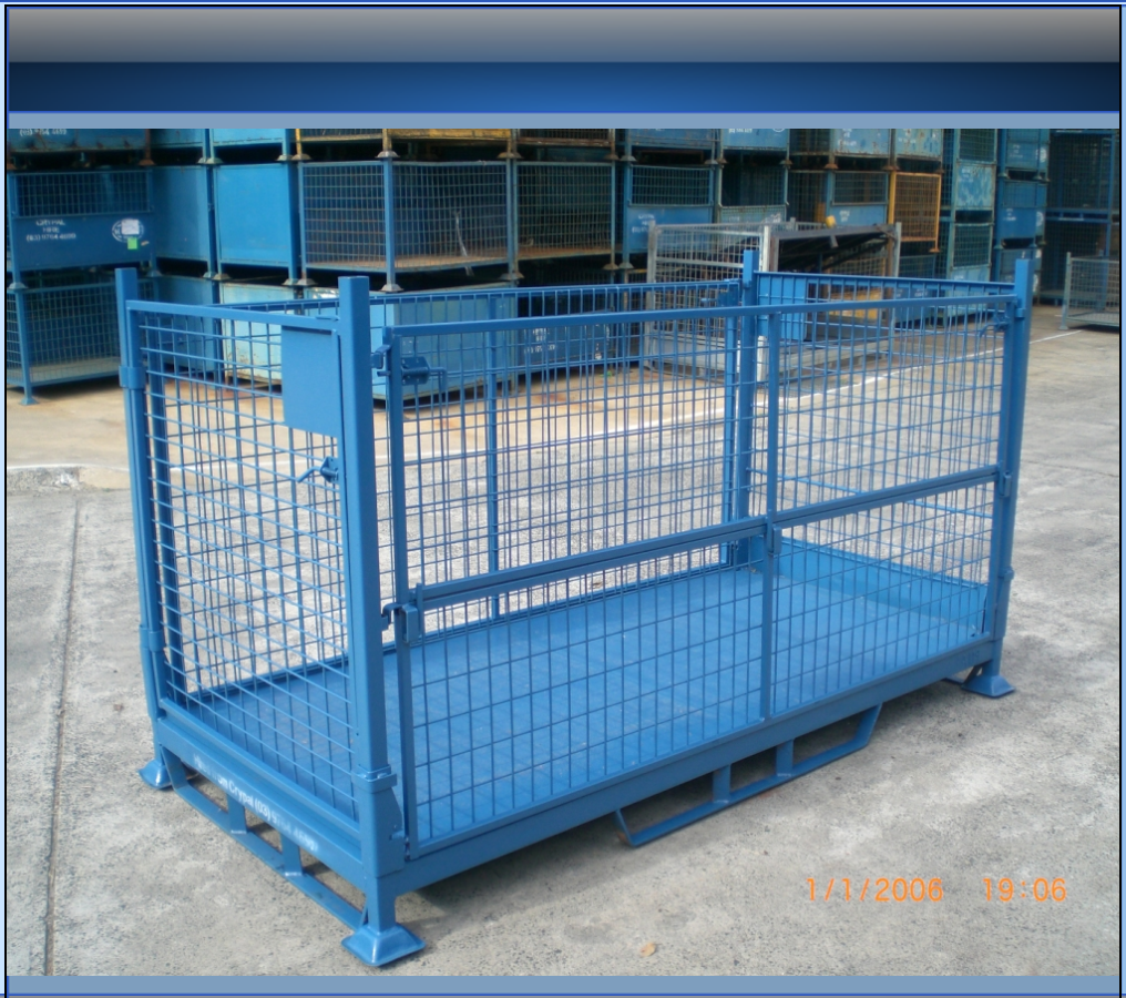 Stackable to 7 high on a Pantec truck when collapsed and only 2 high when erect. Pod feet for easy capture and stacking and 4 way access for pallet truck or forklift.