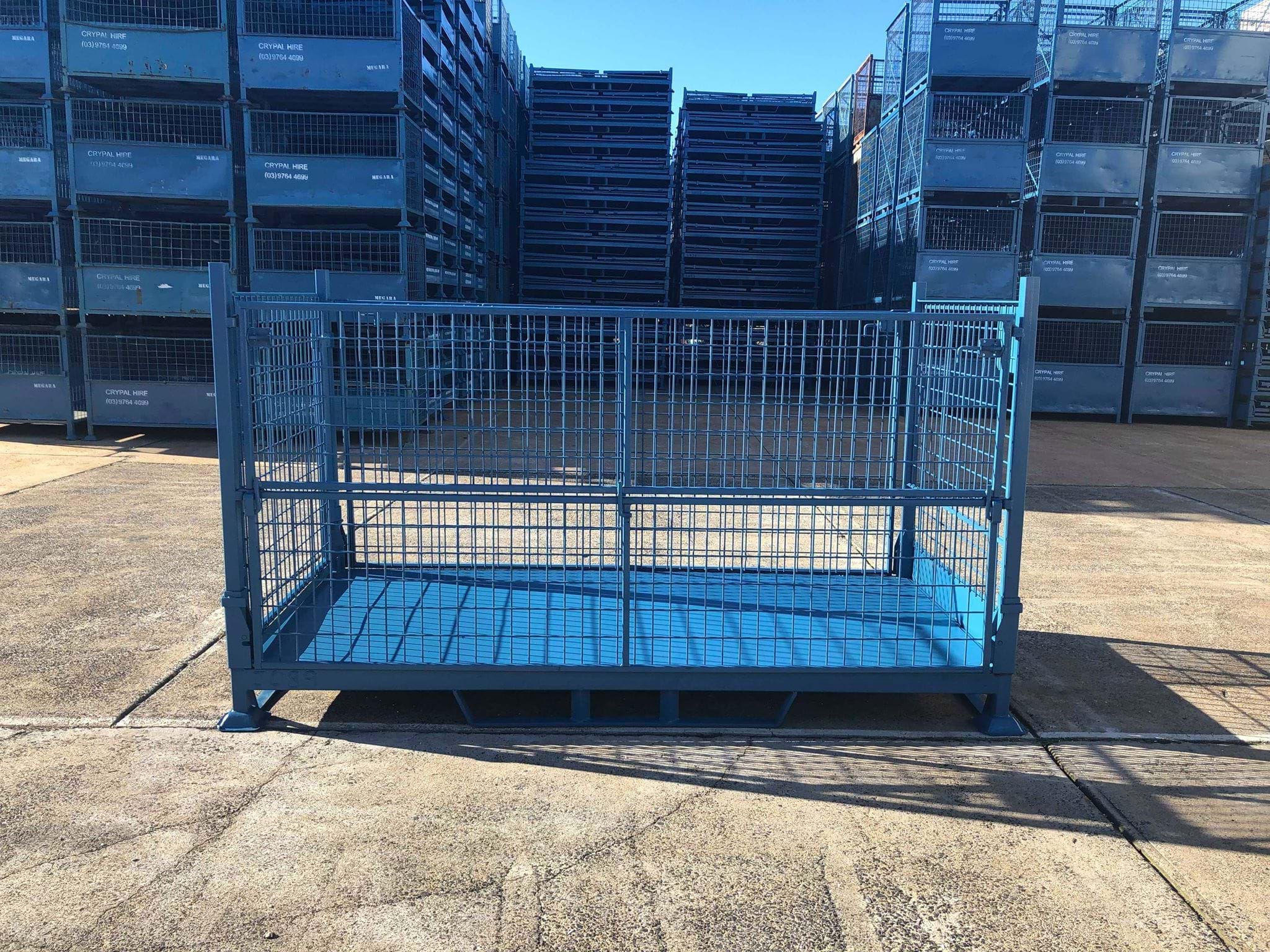 Large widebody stillage with a half drop down and fully removeable front gate with collapsible mesh sides.