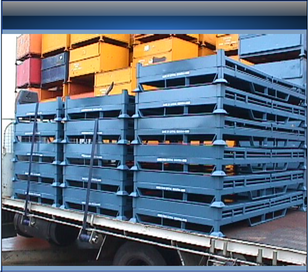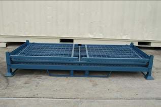 Stackable to 7 high on a Pantec truck when collapsed and only 2 high when erect. Pod feet for easy capture and stacking and 4 way access for pallet truck or forklift.