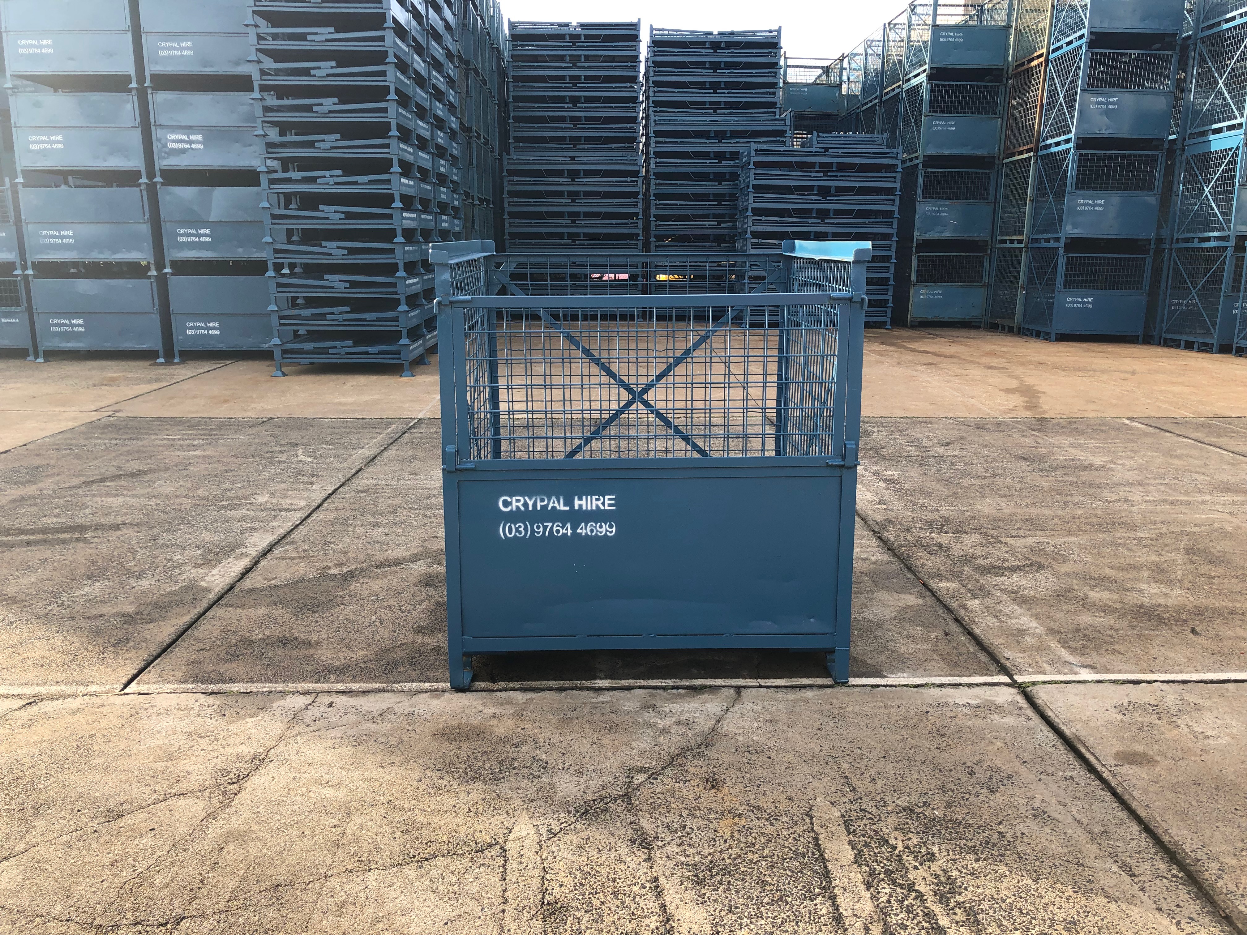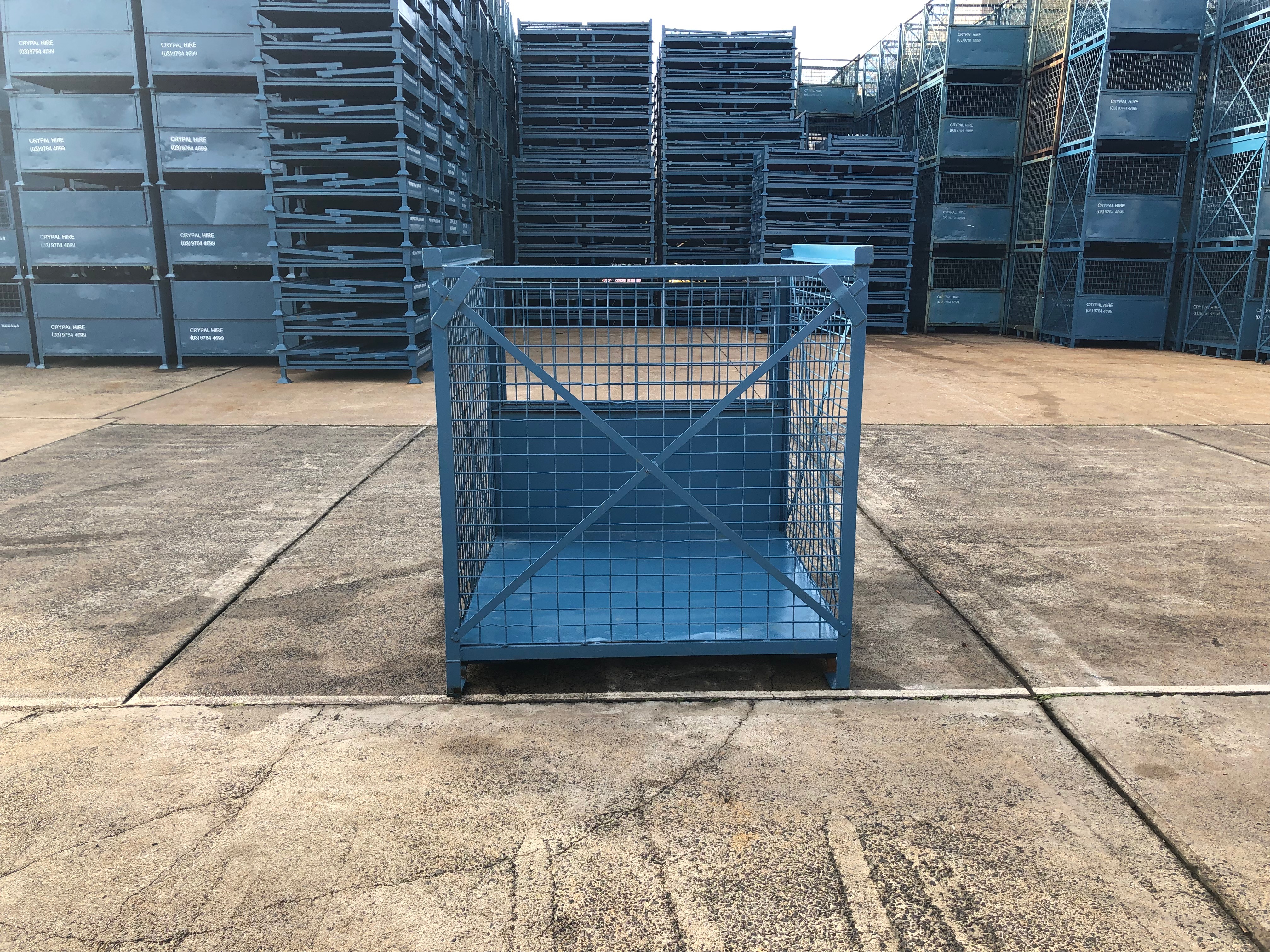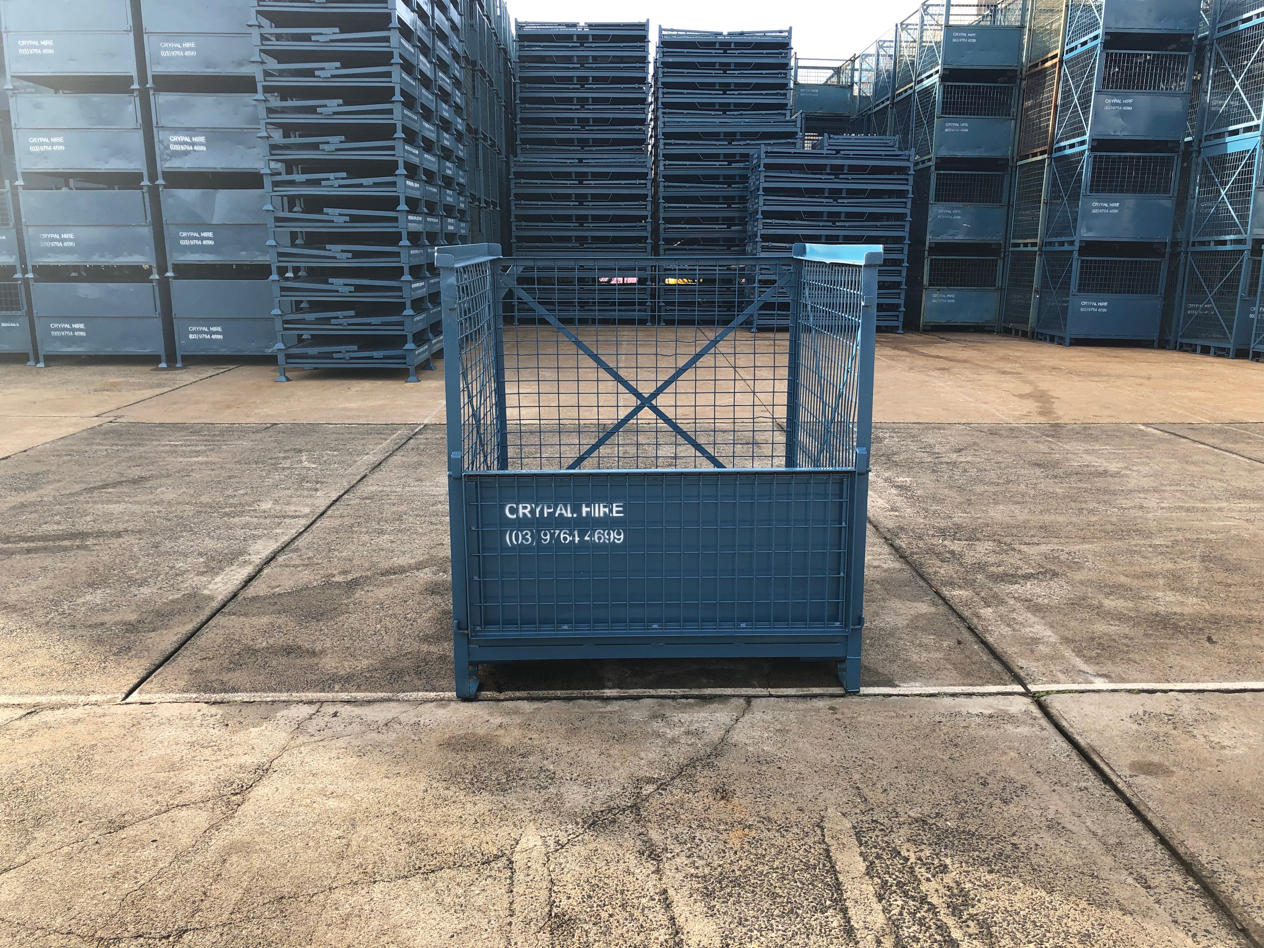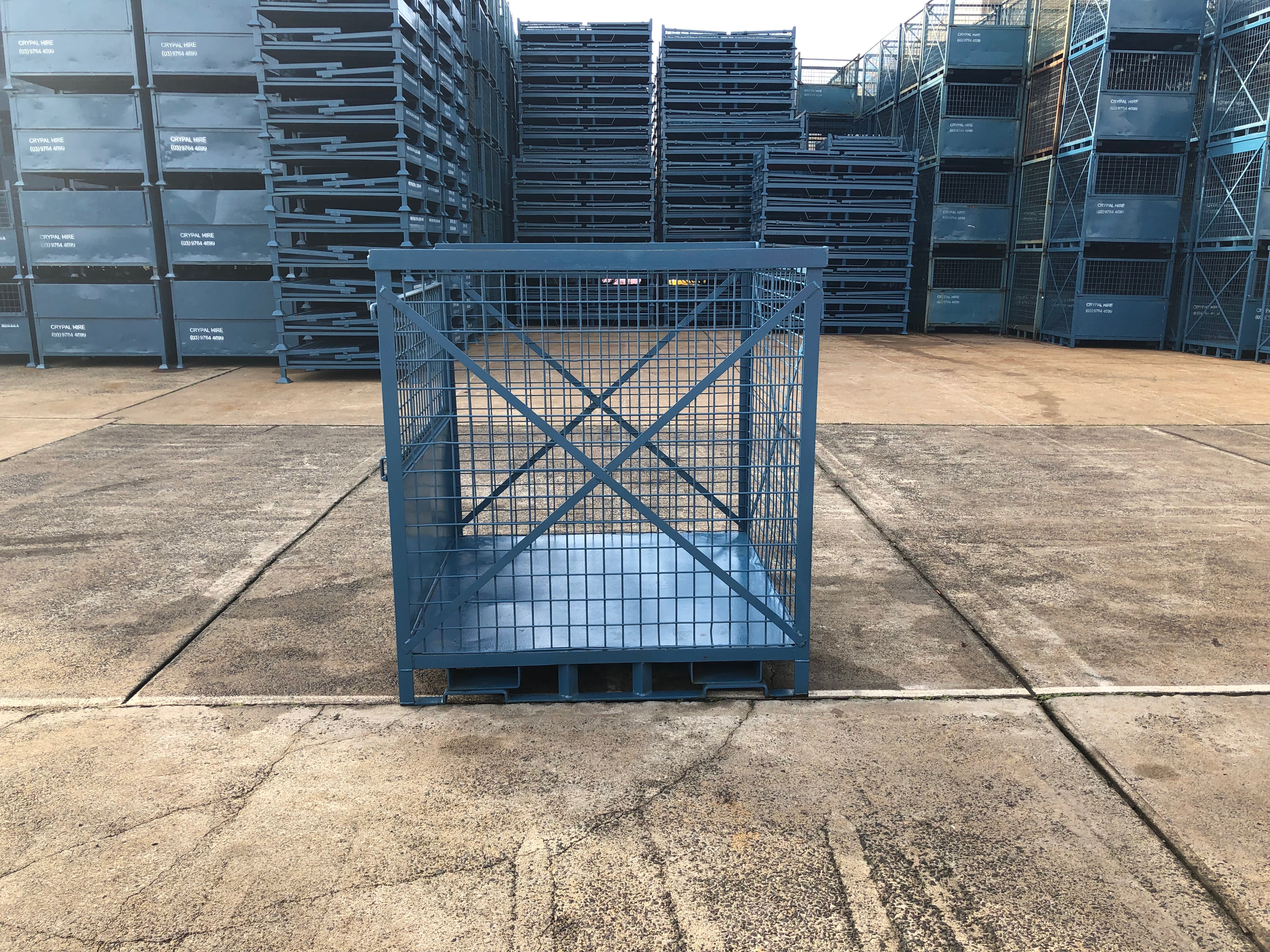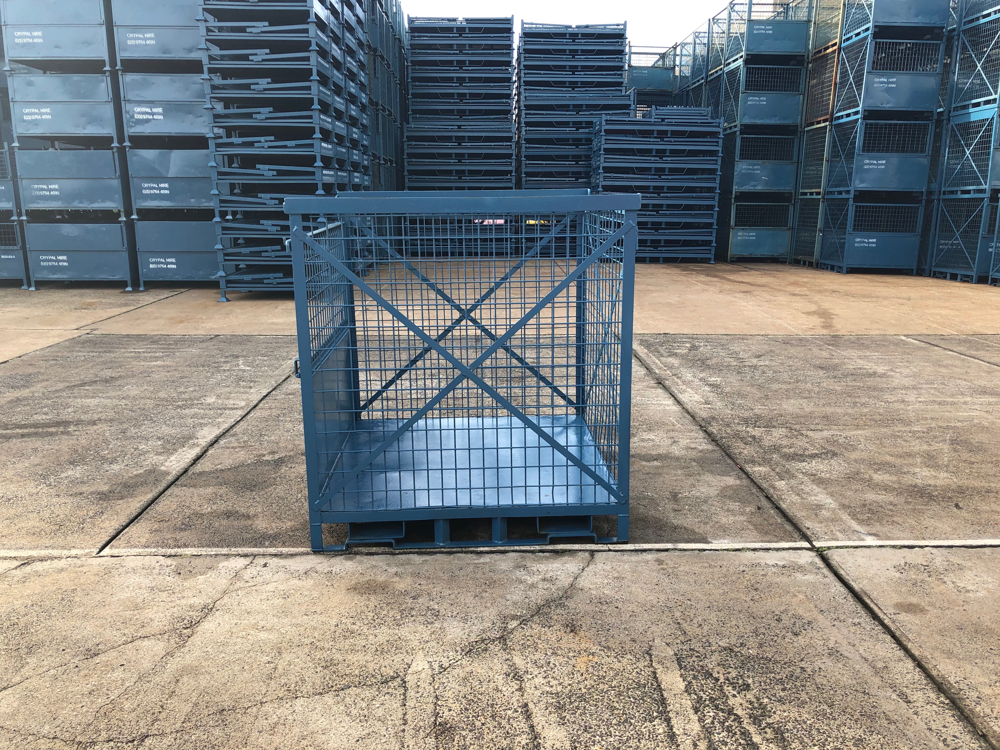 Same base dimensions as a standard wooden CHEP Pallet with a half drop down front gate and mesh sides.