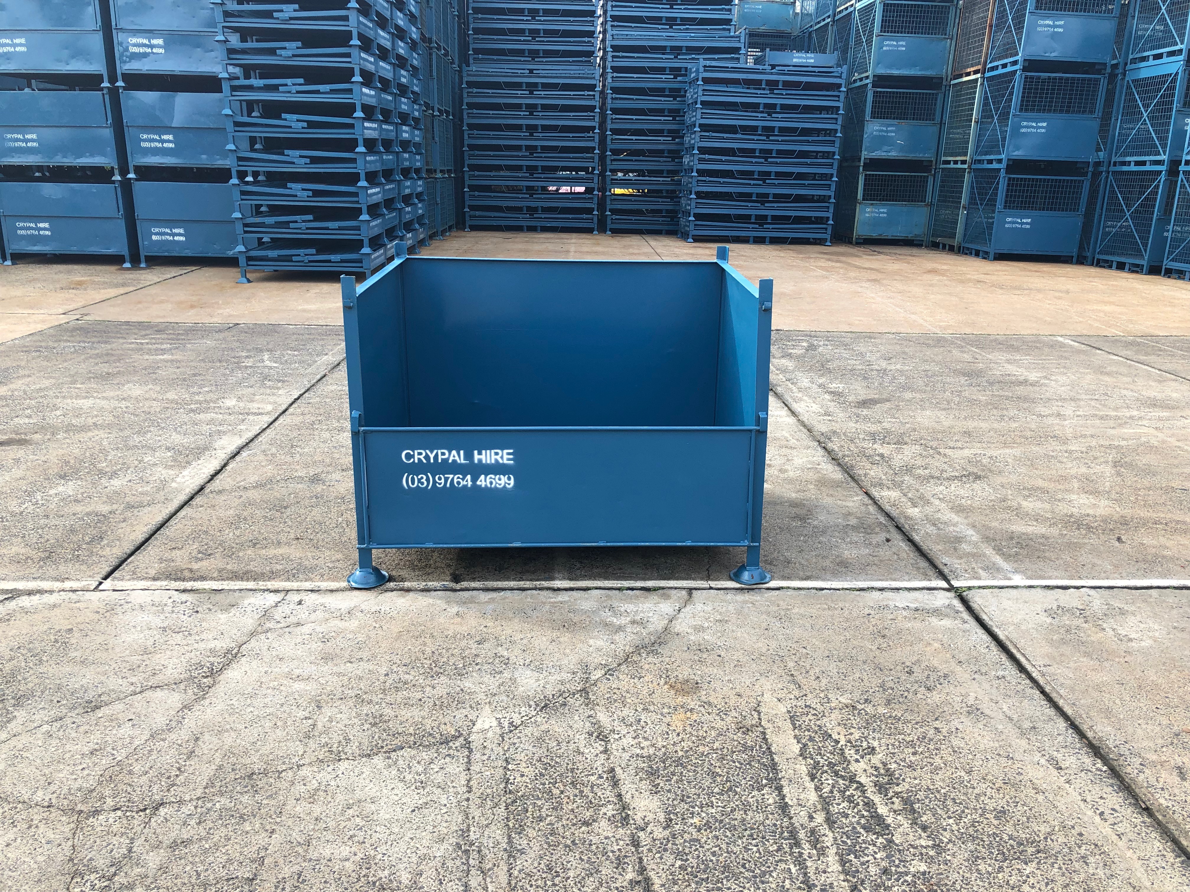 Half drop down front gate with four way pallet truck and forklift access.
